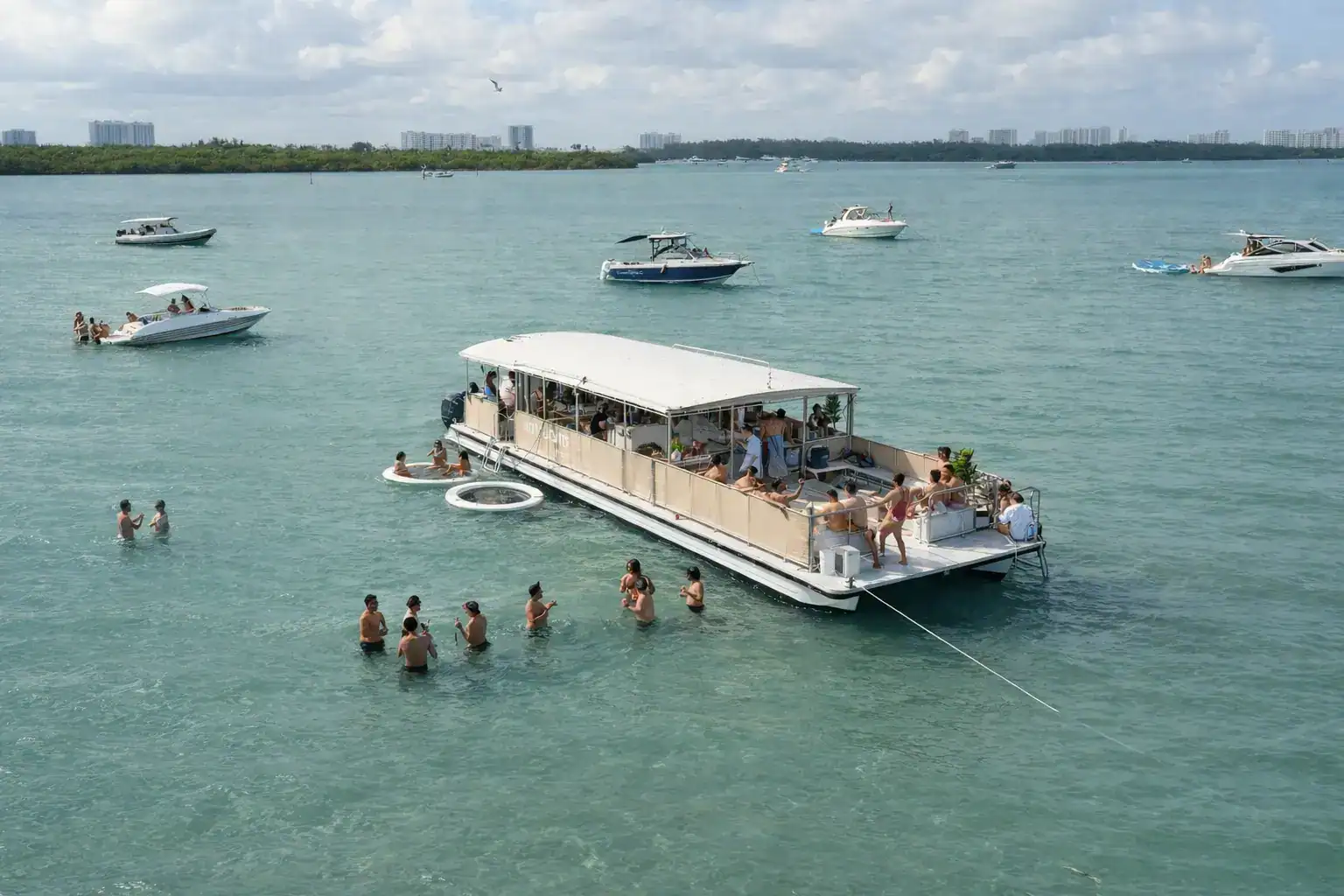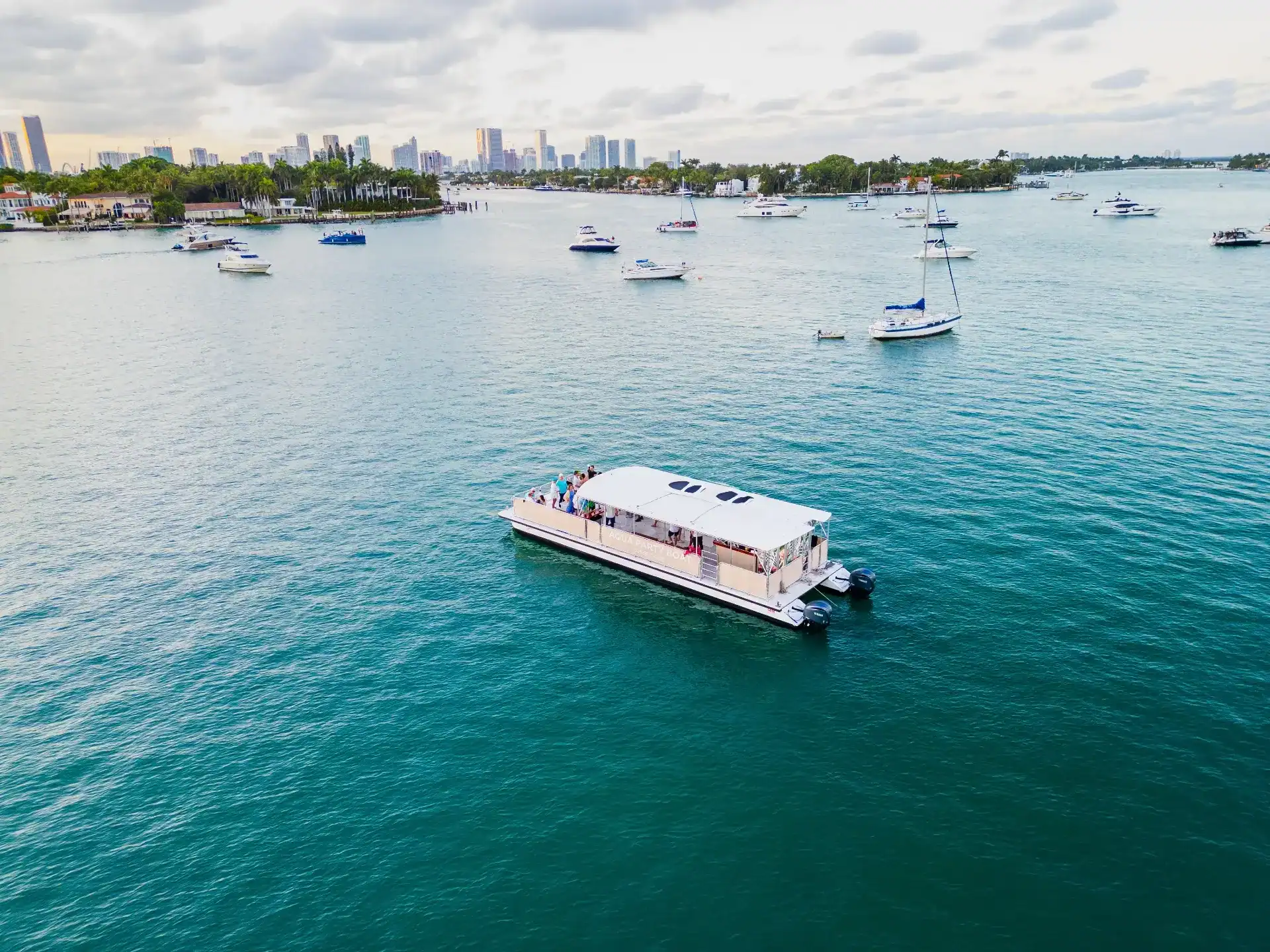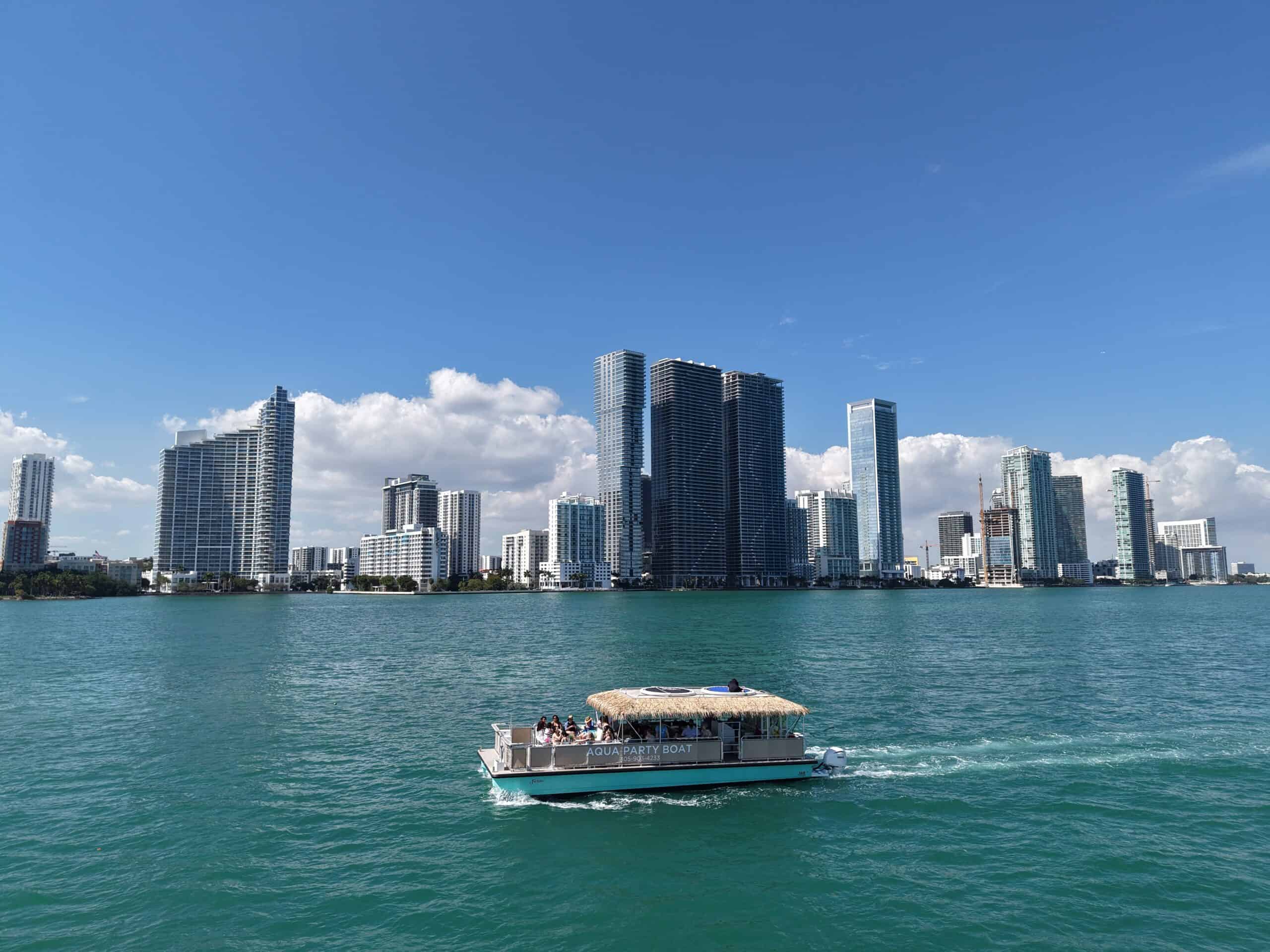 1.5 HOUR HAPPY HOUR CRUISE • MANSIONS• DOWNTOWN MIAMI SKYLINE VIEWS • MUSIC