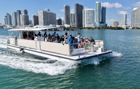 The ultimate high-energy Miami Booze Cruise — music on, good vibes, drinks flowing, and skyline views the entire ride. Grab your friends and hop aboard our Miami Happy Hour Booze Cruise for a fun and energetic 90-minute cruise through beautiful Biscayne Bay. This experience is perfect for tourists, locals, birthdays, and anyone looking for an unforgettable Miami vibe on the water. Enjoy music, fresh bay breezes, and stunning skyline views as we cruise through Downtown Miami. Upgrade your ticket to include unlimited beer, hard seltzers, and wine for the full ride. It’s the perfect quick escape that fits easily into your day or night plans.