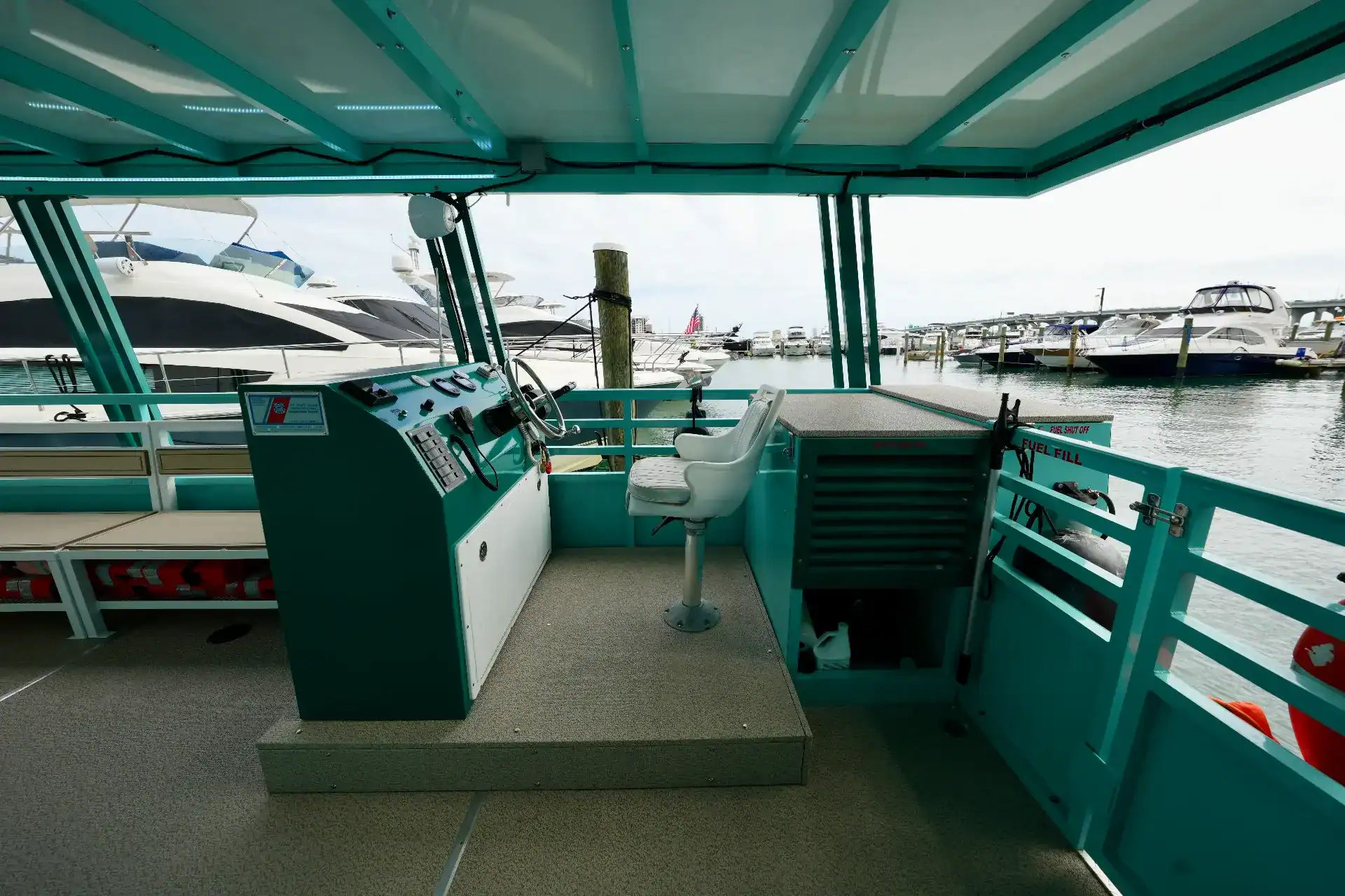 Relax and Unwind: With plenty of comfortable seating, a spacious bathroom, and a food storage shelf, you can relax and enjoy your time onboard. We have plenty of coolers filled with ice to keep your beers and drinks cold, so you can sip and celebrate with your friends.